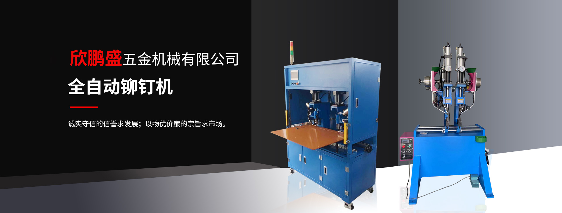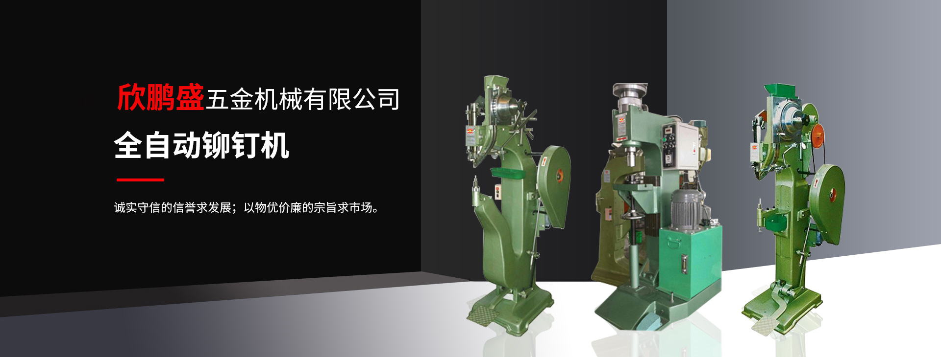 欣鵬盛 鉚釘機(jī) 為“制造出優(yōu)良機(jī)械”欣鵬盛愿與海內(nèi)外各屆朋友攜手共進(jìn)、追求優(yōu)良、挑戰(zhàn)未來(lái)、共創(chuàng)輝煌。